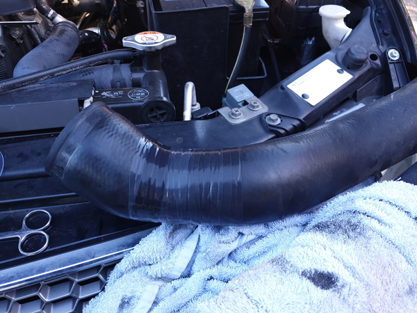 I decided to replace all the intercooler hoses with new ones as I thought if one had split, the others are probably not far behind. The original hoses are rubber and I could feel the outer wall of them starting to rub off and disintegrate. I ordered a set of silicon hoses because a) silicon will hopefully last longer than rubber and b) an aftermarket set of silicon hoses is about 50% cheaper than OEM rubber hoses.